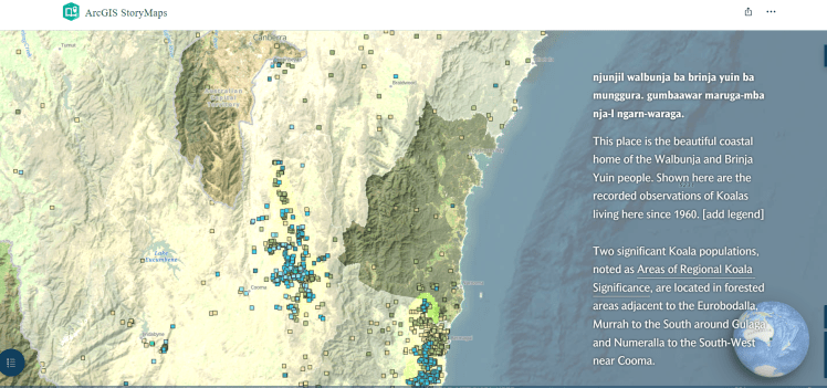 Just north of the Eurobodalla, at East Lynne, a koala was seen beside the highway during the December 2019 Currowan fire, and koalas were heard in the precinct in May 2020. There are three records in the Benandarah and Durras areas between 2002 and 2009.
