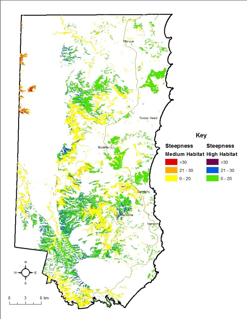 - modeling best habitat, at regional and local scale, taking into account potential home ranges and breeding corridors for recovery, in the context of the wider southeast NSW metapopulation